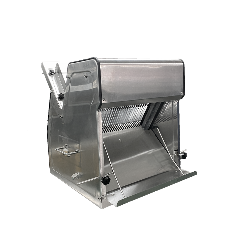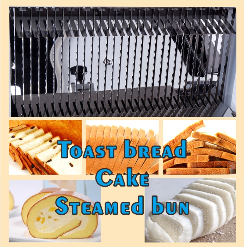 吐司切片机 采用进口锋利刀片,不粘表面,切片吐司均匀美观。它用于切方形面包,尺寸很小。它是高效和易于移动。专业设计。切削力是平均的,切削表面是平坦的。进料板,接收板,限位板等由不锈钢制成,符合卫生标准。
