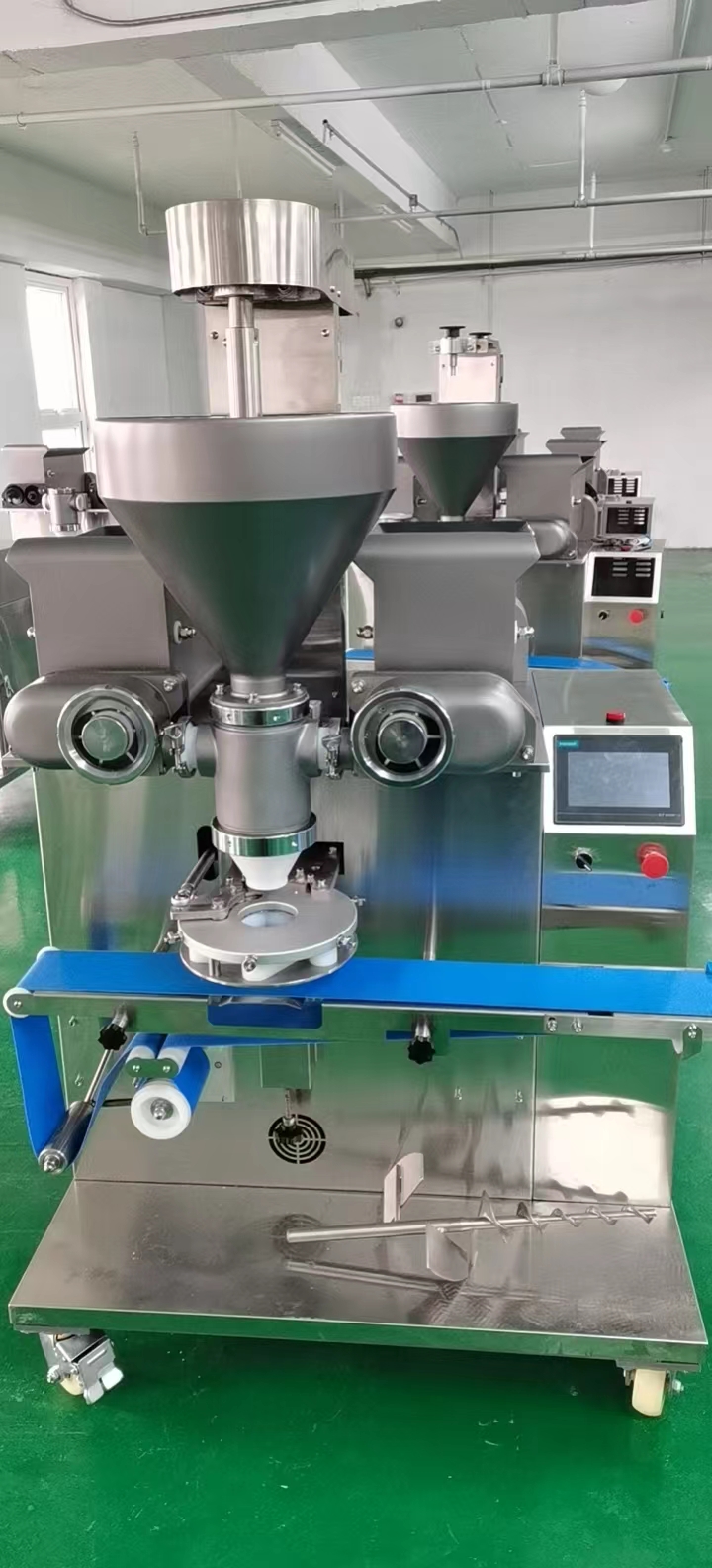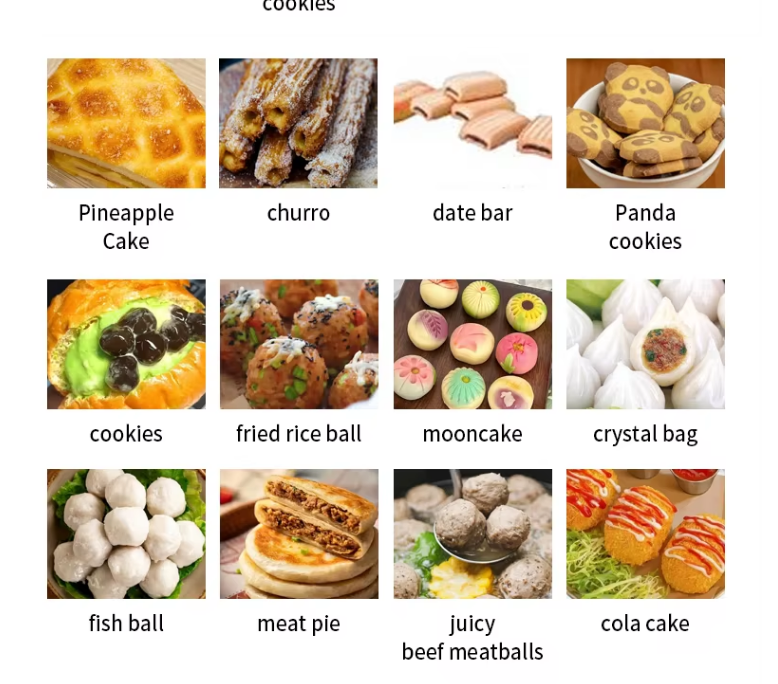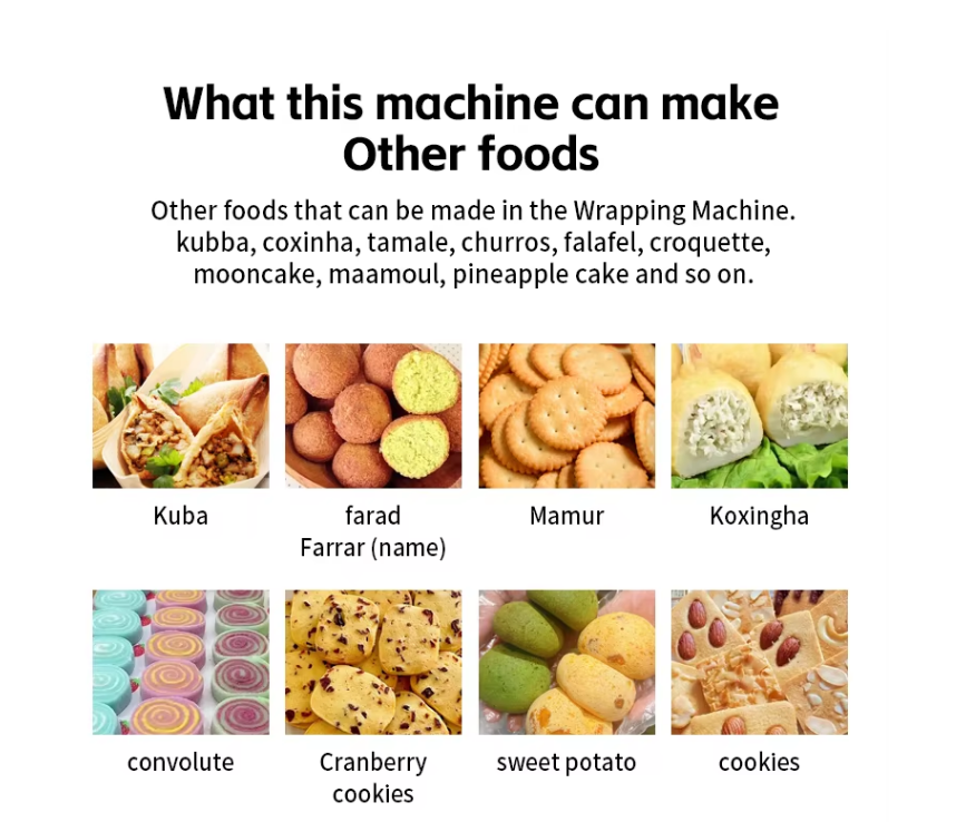 填料机 配备干式填充结构,也可以生产带有干式填充物的食品。面团排出部分的双螺杆螺旋钻设计允许机器生产各种熟米粉、糯米粉、淀粉产品,如肉夹馍、芝麻饼、雪糯米团、干饭团、糯米肉夹馍。它具有成本效益,可以与包衣机、面团分割机、压平机、月饼成型机连接在传送带上,生产各种美味食品,如炒芝麻球、南瓜派、地瓜球、肉包子、芝麻饼、雪麻。它适用于生产各种包装/填充食品。