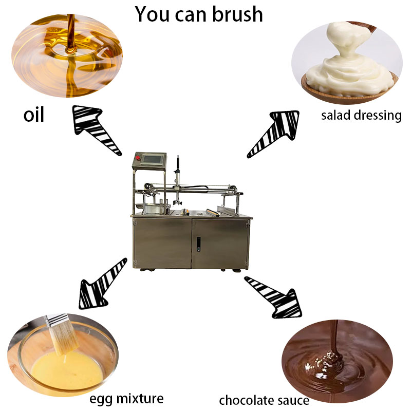Fully automatic egg brushing machine The small fully automatic egg brushing machine is small in size, light in weight, light and fast. It is suitable for the production line of fully automatic egg liquid, sugar liquid and oil liquid for peach cakes, moon cakes and bread. The fully automatic egg brushing machine uses a brush made of high-quality animal hair, which can evenly apply the liquid on the pastry blank, which can enhance the taste and color of the pastry. The appearance is made of all stainless steel packaging, which meets the food hygiene standards. The automatic egg brushing machine is an ideal utility model food machinery for various pastry manufacturers. Its use can increase product output and improve product grade. The fully automatic egg brushing machine completely changes the current low production efficiency, employee waste and secondary pollution. At the same time, it can save a lot of labor, thereby reducing production costs and bringing good economic benefits to the enterprise.