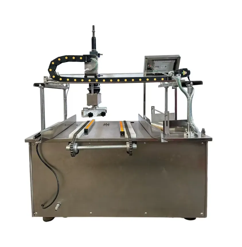 1.自动喂盘,自动刷蛋液均匀。 2.面板整洁,节省劳动力。 3.滚子布置,链条和链轮传动,维护方便。 4. PLC电脑控制,配方可定制。 5.伺服电机,定位更准确,工作更稳定。 6.可调气缸,自由调节高度。 7,产品体积小,适用于各种场景。